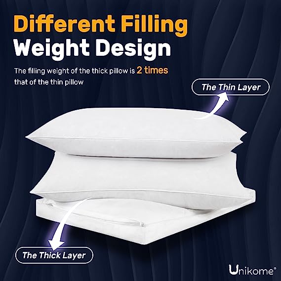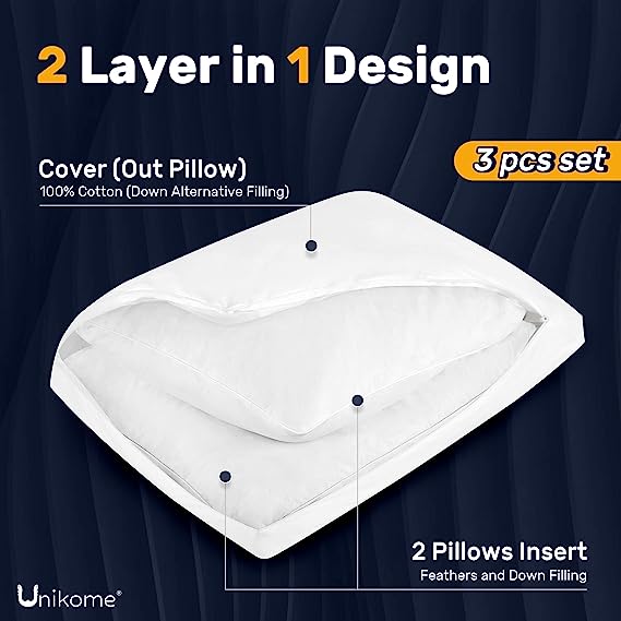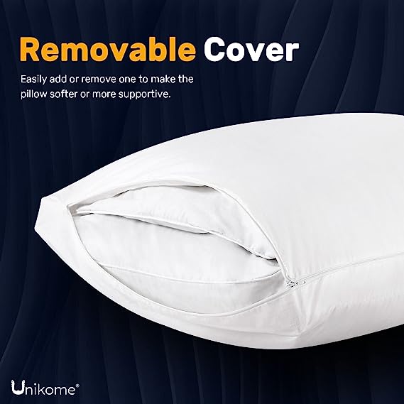 UNIKOME Adjustable 2 in 1 Layer Pillow, Goose Feathers Down Pillow with 100% Cotton Cover, Firm Support for Stomach, Side and Back Stomach Sleeper, Standard/Queen Size, Pack of 1, 20x28 Inches